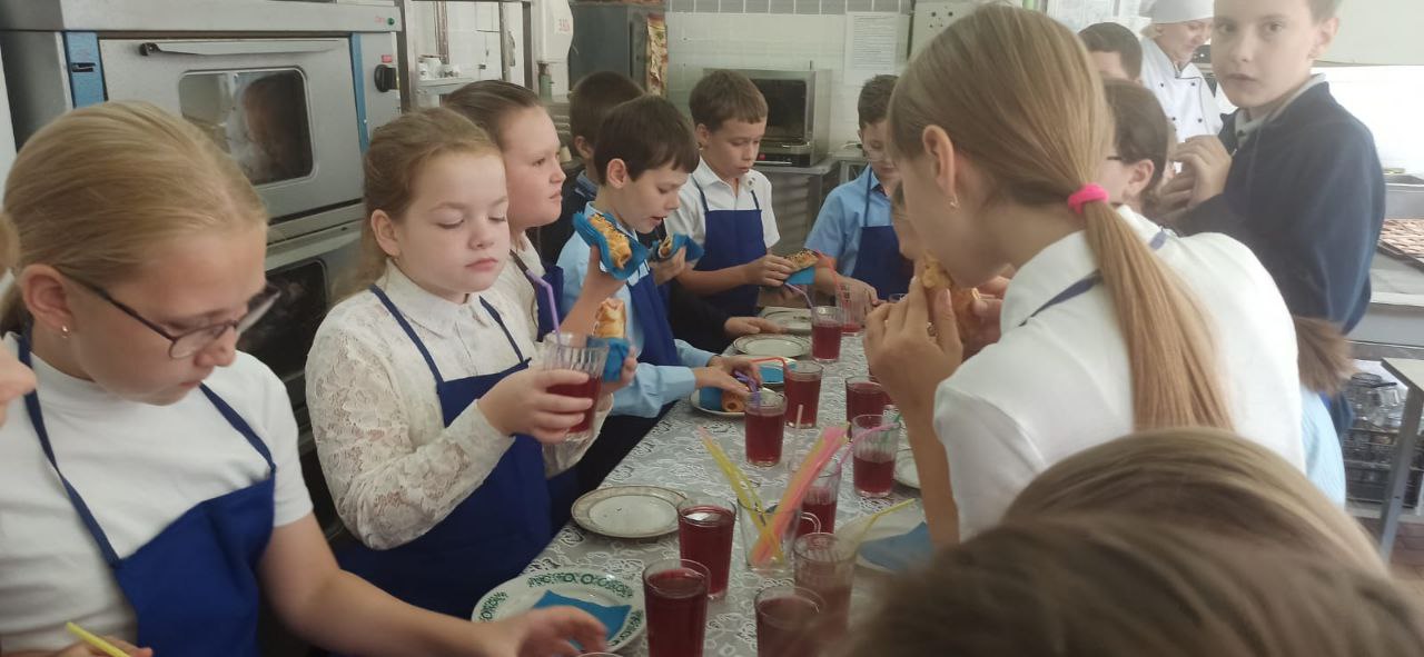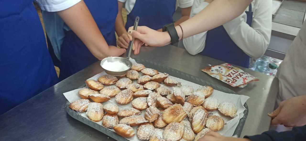 Мастер-класс прошел в уютной лаборатории поваров, где ребята сами попробовали создать настоящие кулинарные шедевры — сосиски в тесте и ароматное апельсиновое печенье «Мадлен». В качестве прохладительного угощения Катерина Владимировна приготовила вкусный компот из садовых ягод, который пришелся по душе всем участникам.