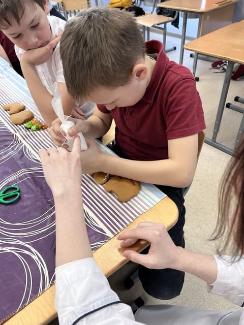 Студенты группы №38 провели для учащихся 3 «А» класса Артинского лицея мастер-класс по оформлению имбирных пряников, приуроченный к Дню защитника Отечества.