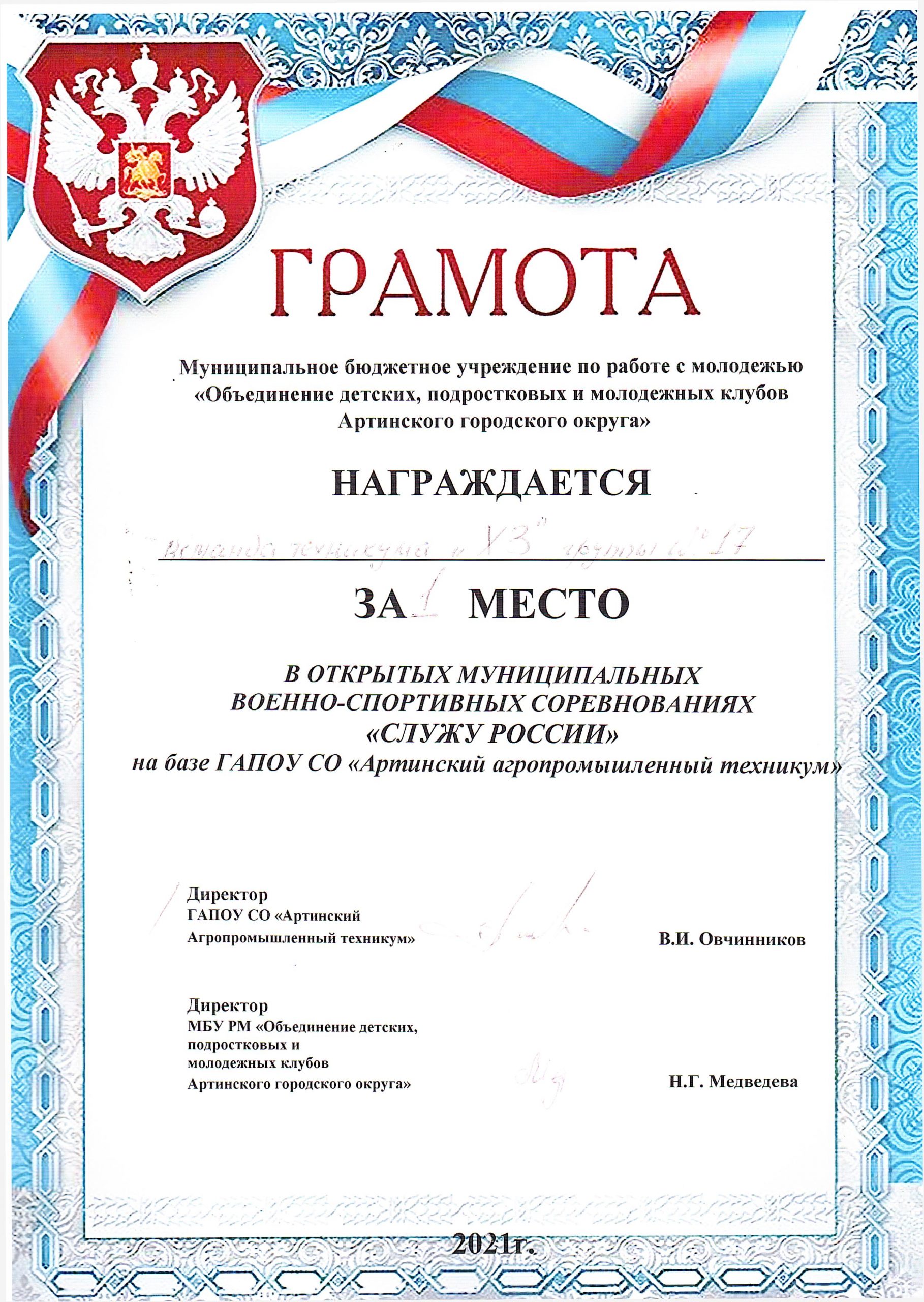 Грамота _ служу России